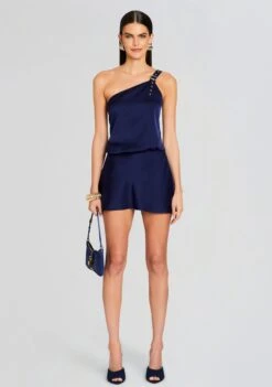 Make a statement in SER.O.YA’s Davina Dress. The one-shoulder design adds an elegant touch to this mini dress, while the loose-fitting top ensures a relaxed and effortless vibe. The adjustable shoulder strap detailing allows you to customize the fit to your liking, ensuring a perfect silhouette every time. Shown here in Navy.