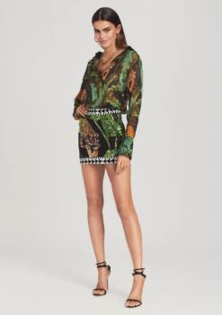 Our Marcel Duster will have you embodying luxury from head to toe. The beaded floor-length shift features long sleeves and a three button closure at the front. Shown here in White.