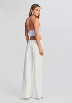 Show off your style in SER.O.YA’s strapless Melanie Corset Top. This bustier style features a semi-sweetheart neckline, chevron cut pattern, and six hook-and-eye closures at its back for a secure fit. Shown here in Light Blue Stripe.
