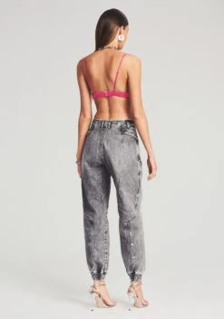 A call to the ‘80s, the Miriam Pant is a cool alternative to your classic jeans. Designed with billowy tapered legs, the ultra high-waist silhouette is subtly faded and distressed throughout. The style is finished with button accents and topstitched panels at the waist. Wear it with a classic tee or a bodysuit. Shown here in Slate Grey.